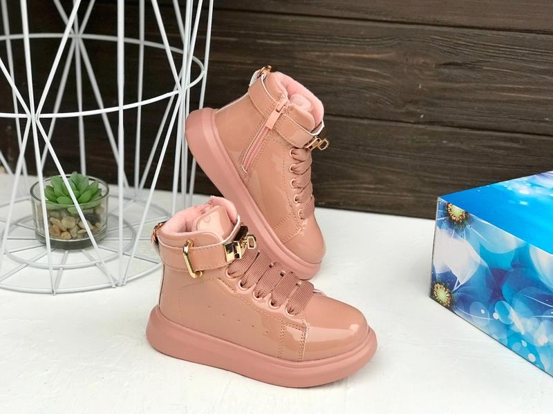 Без кнопки замовити ‼️‼️‼️ Лаковые ботиночки Мягенькие, легкие и удобные Утеплены плюшем Сбоку молния пудра 30 размер 17,8 см
