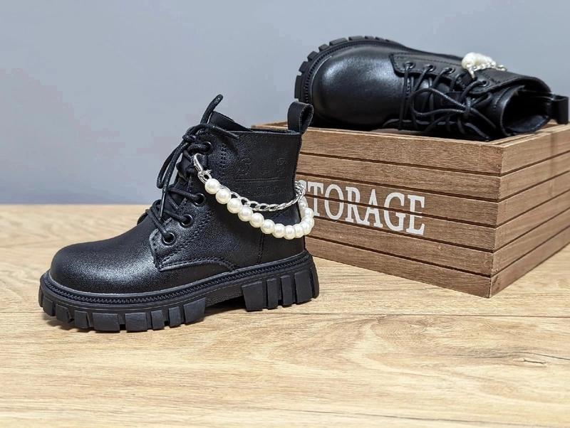 Стильні ботінки для модних дівчаток. Верх якісна екошкіра. Всередині утеплені мякеньким флісом. Устілка теж фліс. Збоку є замочок. Прикраси при бажанні можна зняти. Якість бомбезна. Легкі та зручні. Розміри: 28р-17,4см 29р-17,9см 30р-18,5см 31р-19,2см
