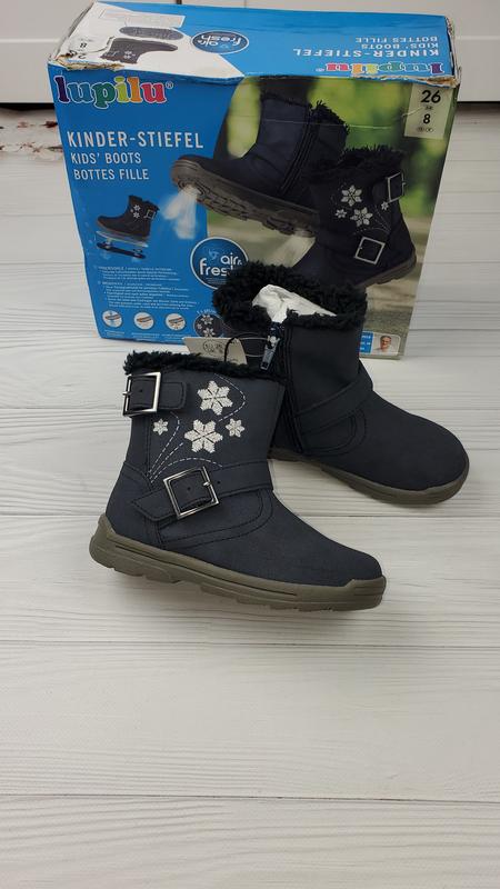 Дихаючі чоботи холодна осінь, тепла зима air& fresh ( запатентована технологія) Lupilu на дівчинку у розмірі 26, устілка від краю до краю 17 см. Штучний нубук, красива, блискуча вишивка. 💥Спеціальна мембрана у підошві відштовхує воду, бруд та пісок 💥 Завдяки такій будові підошви відбувається чудова циркуляція повітря в середині, тому нога не спарюється👍 💥Спеціальна перфорована устілка 💥 Рекомендовані німецьким ортопедом. По калюжах не бігать!😊 Але в дощову погоду можна 😉 Верх: поліуретан без ДМФА (спеціальний розчинник, який має високу токсичність) з PU нубук,в середині: поліестр, устілка -поліпропілен, підошва TPR (термопластична резина), антиковзка