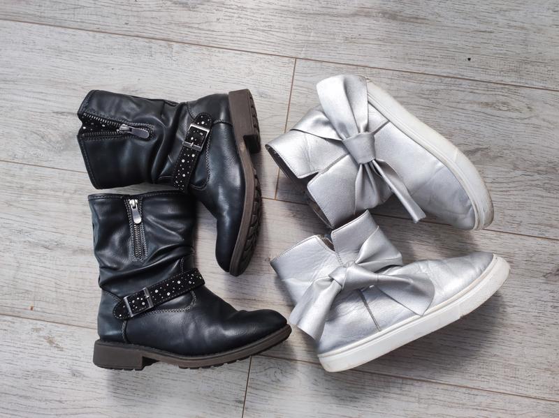 Черевики на теплішу осінь, сріблясті, виробник Sinsay. Стан добрий на 9 з 10. трішки потріпалвсь підкладка на п'ятці в середині черевичка (останнє фото), на теплоту ніг чи зовнішній вигляд ніяк не впливає. Розмір 35 , по устілці 22,5 см. Ціна 230 грн Черевики демі чорні з Польщі. Утеплені шерстю, носили холодною осінню і зимою або вдягали теплий носок додатково на сильні морози. Розмір 34, в середині черевика 21,9 см. Стан добрий на 8-9 з 10, без недоліків, Ціна 320 грн Торг можливий, питайте )) якщо доставка Укрпоштою, то +5-10 грн за їхній пакетик і + 10 %Шафі