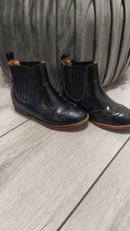 Стильні чобітки на дівчинку. Розмір 27. Еко-шкіра. Стан дуже хороший, лише стерлась фарба на підошві. Але її легко можна підфарбувати. Ціна знижена - 230