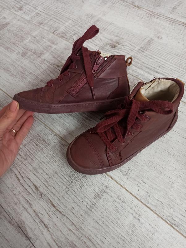 Шкіряні ботіночки в гарному стані, устілка 19.5см. Зручно взувати, дитина сама може застібати замок, шнурками легко регулювати повноту та підйом черевичка. М'яка шкіра, гнучка підошва, дуже зручні. Повністю цілі, не протікають.