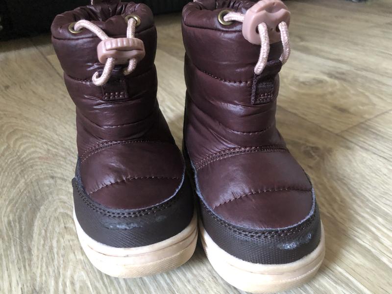 Євро зима, носили майже всю зиму. Розмір 21, 13,5 см по устілці. Є незначні подряпини на носках ( на фото видно)