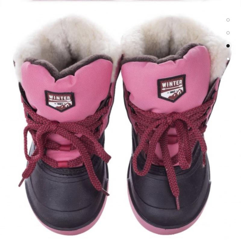 Чоботи на дівчинку, розмір 26-27. Матеріал верху поліестер. Матеріал підкладки натуральне хутро. Матеріал підошви антиалергенний ПАХ.
