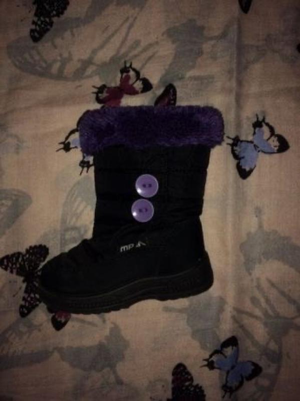 Дитячі ботиночки Ідеальний стан, але відсутні ґудзики Їх з кожної сторони повинно бути по 3 штуки, але їх на одному 2 а на іншому 1 Можна їх акуратно прибрати, або замінити на інші Ботинки дуже теплі
