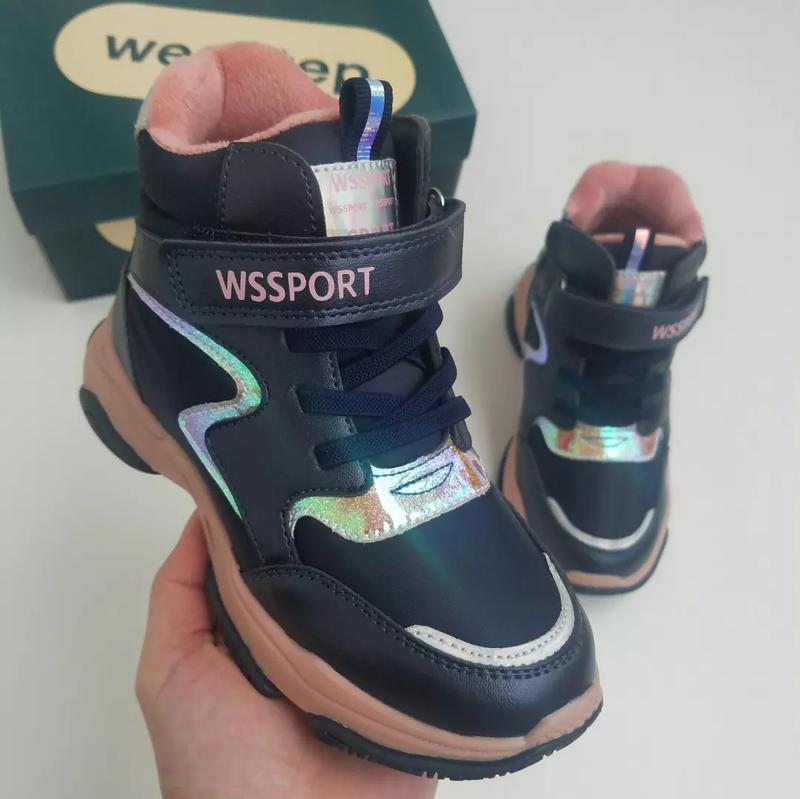 Демісезонні ботинки для дівчинки від Weestep в темно-синьому кольорі. НВерх - екошкіра / шкіра та водонепроникна тканина, нейлон. Всередині утеплені м´якеньким хутром. Дуже легенькі, мають супінатор. Доступні в розмірах : 27 р - 17,5 см 28 р - 18 см ( 2 шт ) 29 р - 19 см 30 р - 19,5 см 31 р - 20 см ( 2 шт ) 32 р - 21 см