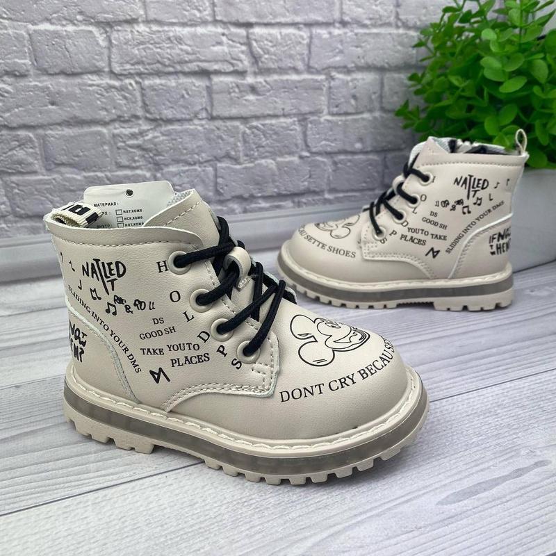 Демісезонні черевики підійдуть як хлопчикам, так і дівчаткам. Черевики утеплені плюшем. Шкіряна устілка із супінатором. Верх еко шкіра. Збоку блискавка та шнурівка. Підошва світиться при ходьбі ( гарантії на елементи, що світяться немає) Дуже красивий дизайн та відмінна якість 🥰. Розміри з 22 по 27 Код 1106 Розміри/виміри устілки: 22-14,0 см 23-14,5 см 24-15,0 см 24-15,0 см 25-15,5 см 25-15,5 см 26-16,0 см 27-16,5 см Рекомендований запас на демісезонне взуття +0,5-1 см до довжини ніжки дитини.