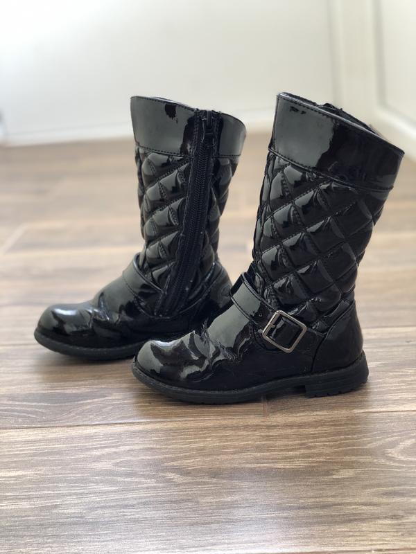 Дуже гарні лакові чоботи на дівчинку Всередині м‘якенькі Розмір 24 Досить гарний стан. Подряпин немає. Заломів сильно не буде видно коли будуть на ніжці.