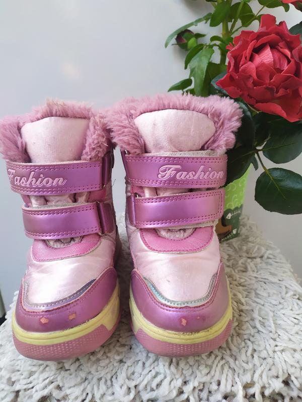 Продам сапожки для девочки б/у в хорошем состоянии, очень,очень теплые и добротные. Есть изъян, затерты носочки, на снимке отражено.Стелька-16 см.