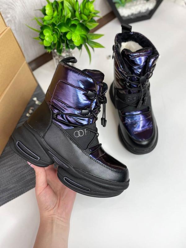 💎 Шикарні фіолетові (хамелеон) чобітки. 💎 Спереду на утяжці, резиночка по обхвату ніжки, збоку блискавка. Матеріал верху - еко.шкіра+ плащівка. Усередині утеплені овчиною (60% натур.). Підошва товста, не промерзатиме. ❤ 1250грн 35р. - 22,7см 36р. - 23,4см ❗ Вимірювання зроблено всередині по устілці особисто мною, похибка 1-2мм допустима.