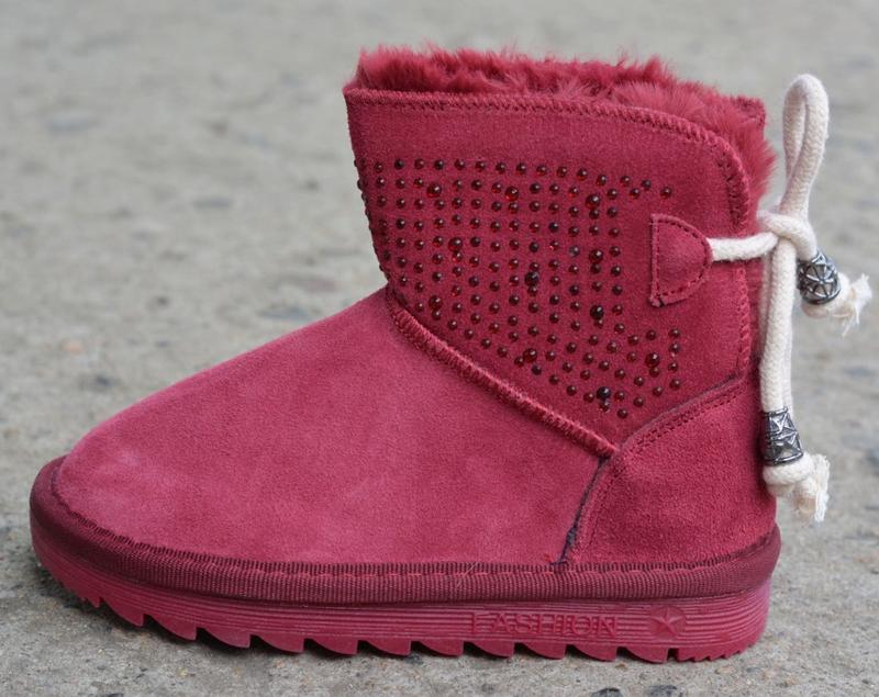 Модные детские зимние угги ugg замшевые бордовые р28-32