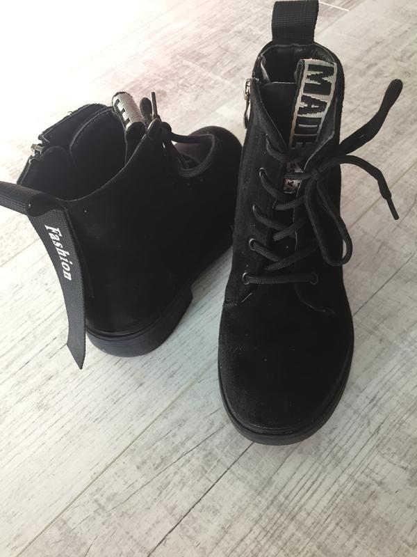 Черевички для дівчинки з натуральної замші на флісі. Розмір 32. Устілка виміряна в черевичку рулеткою від 0 і має 19.5см. на останньому фото видно дефекти