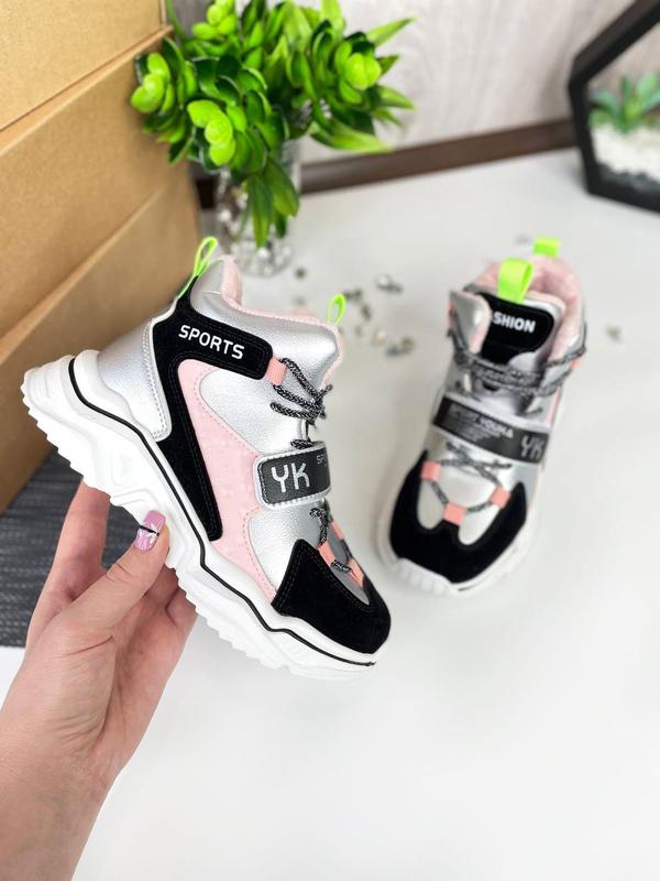 💗 Класні черевики для дівчаток. 💗 Фіксуються за допомогою липучки та шнурівки. Збоку на замочку. Усередині підкладка м'який фліс. Устілка утеплена. Легкі. 915грн 34р. - 21,2см 35р. - 21,8см ❗ Вимірювання зроблено всередині по устілці особисто мною, похибка 1-2мм допустима.
