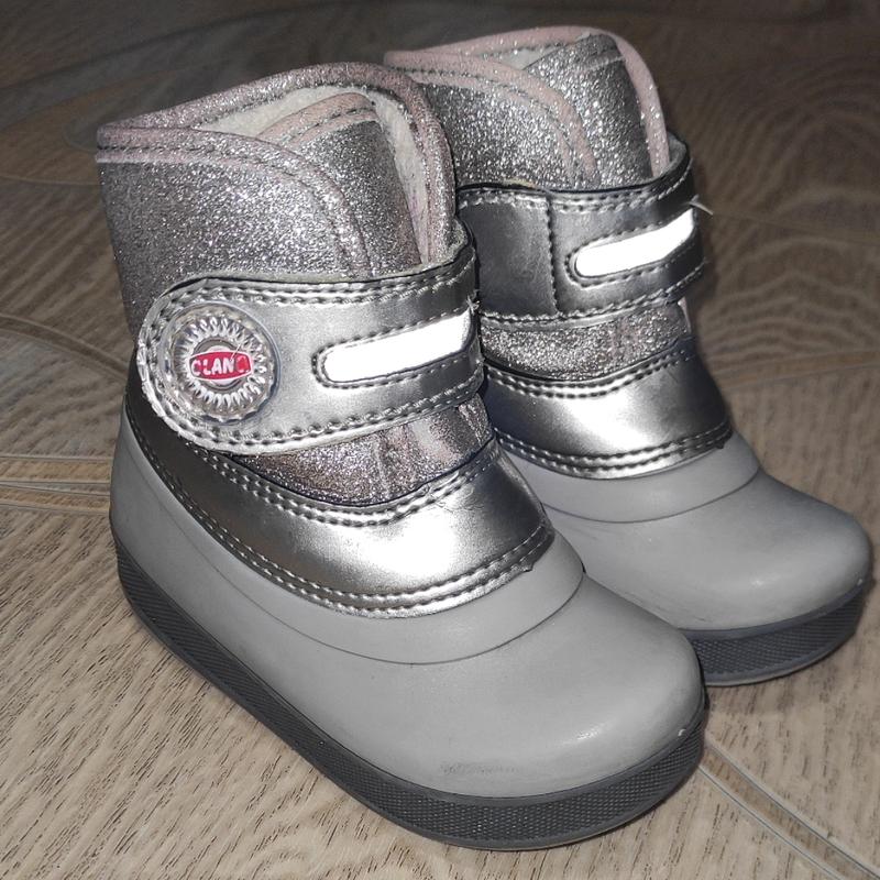 Класные, качественные, в идеальном состоянии зимние сапожки на девочку р.23-24, по стельке 15см. Если вы ищите добротные зимние сапоги для девочки, обратите внимание на стильный вариант от испанской торговой марки Olang. Верх изделия выполнен из высококачественной искусственной кожи, которая не промокает и отлично сохраняет тепло. Высокий язычок и широкая вставка, оснащенная липучкой, помогает регулировать нужную ширину голенища. Для утепления использован искусственный гипоаллергенный мех. Серебристая окраска придает дизайну нарядный вид. Подошва, прорезиненные пятка и носок серого цвета, что создает единый цветовой ансамбль с верхом изделия. Высокая подошва изготовлена из качественной резины Vibram, которая отличается гибкостью и отличным сцеплением со скользкими поверхностями. Прорезиненный носок и пятка усиливают защиту от влаги и ударов. Зимние сапоги отлично выглядят на детской ножке. Материал верха: терморезина, искусственная кожа Материал внутри: шерсть Материал подошвы: полимер EVA/Vibram/Терморезина Температурный режим от 0 до 20 градусов мороза. Производитель: Olang Сделано в Румынии.