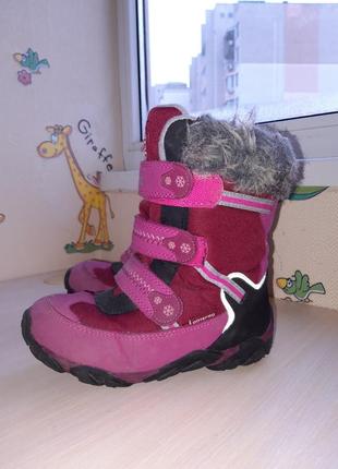 Дуже теплі, не промокають, зручні чобітки. Стан відмінний. Зпереду цілі, не збиті. Липучки робочі. Без дірок і плям. Є Світловідбивачі. По устілці 19.5 см. Стан ідеальний.