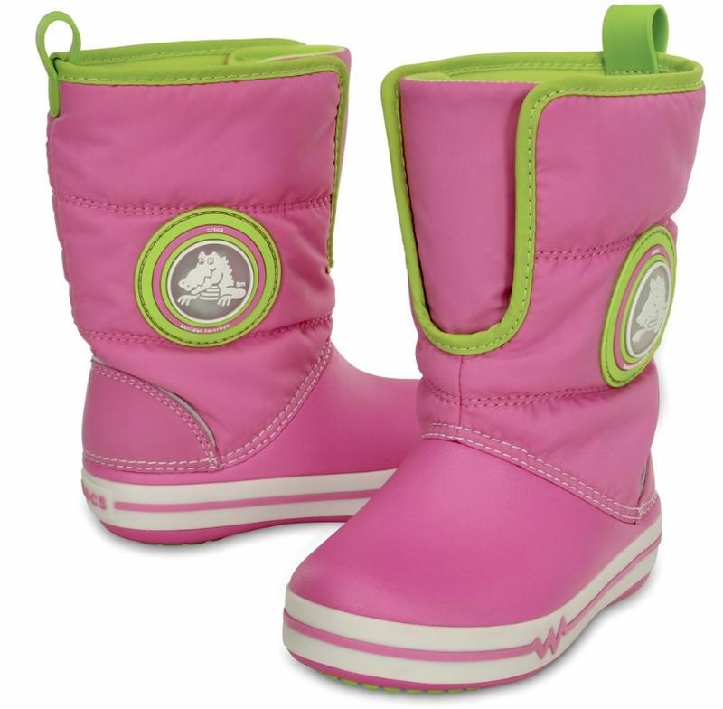 Crocs Kids´ Crocband Зимние непромокаемые сапожки Crocs Очень легкие и удобные, внутри утеплитель, незаменимые на дождь, слякоть и снег! Верхняя ткань также не промакает и не впитывает грязь. Дутый верх детских сапогов Crocband™ Gust Boot сделан из непромокаемого нейлона, утепленного специальным наполнителем, который не дает замерзнуть ножкам. Верхняя часть отлично удерживает тепло и мягко охватывает ногу, удерживаясь широкий липучкой. Подошва и носок отлиты из легкого Крослайта, пятка укреплена дополнительной вставкой. Благодаря хлястику-«ушку» сапоги легко снимать и надевать, даже ребенок сможет справиться с этим самостоятельно. При ходьбе подошва светится и мигает что повышает безопасность. Малышку хорошо видно даже вечером. Крокодильчики тоже светятся разными цветами. Детям очень это нравиться. Подошва с рифлеными резиновыми вставками также способствует безопасности, защищая от скольжения на влажной или ледяной поверхности. Размер С8 (25) 15 см по стельке.