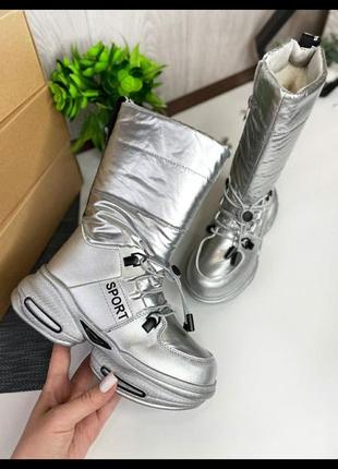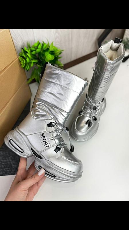 💎 Збоку блискавка, спереду на утяжці. Усередині утеплені овчиною (60% натур.). Підошва товста, не промерзатиме. На ніжці виглядають стильно!❤ 33р. - 21,7см 36р. - 23,3см сині
