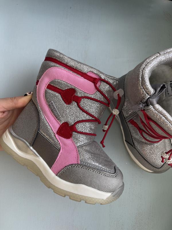 Якісні та теплі зимові сапоги від Том.м. Зручна модель, яка задовольнить потреби у зимовому взутті Вашої дитини. Задник та носочок твердий, устілка виймається. Застібка- блискавка та резинка на зажимі. Матеріал зовнішній- штучний комбінований. Матеріал внутрішній-хутро натуральне та штучне. Заміри устілки: Р23 - 14.9 см Р25 - 16.2 см Р27 - 17.5 см Р28 - 18.2 см Точність вимірів: ~ 0,5 мм. Все взуття в наявності. Відправка Новою поштою в день сплати. Укрпоштою- на наступний день.