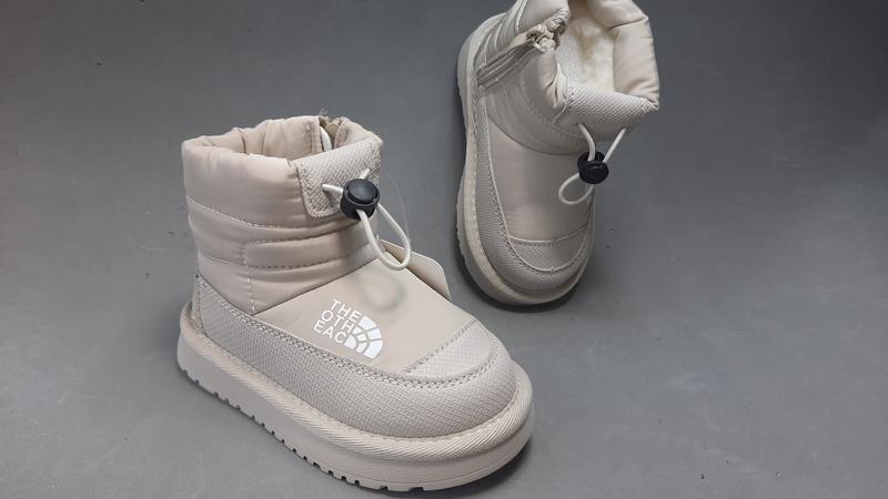 Зимові дутики Тм BBT Колір - беж Верх - еко шкіра + плащівка не промокаюча В середині - хутро 50% натуральне Застібка - замочок Зверху є затяжка від снігу Носочок захищений якісною еко шкірою Підошва гнучка, дуже легкі та зручні Розмірна сітка: 22 - 14,0 см 23 - 14.5 см 24 - 15,0 см 25 - 15,5 см 26 - 16,2 см 27 - 16,8 см