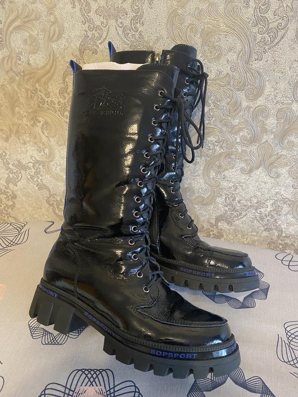 Б/у. Дуже хороший стан. Стильні. Ношені лише одну зиму. Натуральна лакована шкіра. Не мають жодних дефектів. Розмір 36. Довжина устілки 23 см. Хутро натуральне ( овчина).
