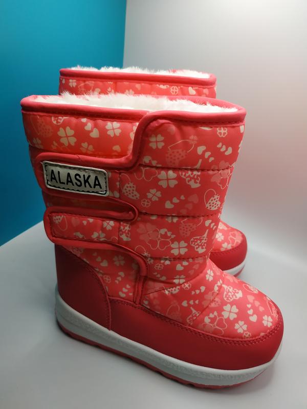 Продам детские дутики Аляска на девочку. Очень теплые, верх - водонепроницаемая ткань, середина - искусственный мех. Подошва не скользит. Красивый розовый цвет. В наличии размеры: 27(16,5 см)