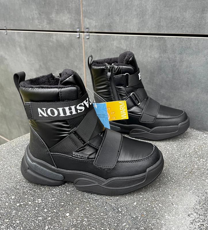 Зимняя обувь Очень красивые и стильные 😍 Очень круто смотрятся на ножке 🤩 Верх из качественной экокожи + плащевка, не промокают! Внутри-овчина (60 % натур ) Прочная подошва.Збоку есть молния Фиксация широкой липучкой 34р - 22 см