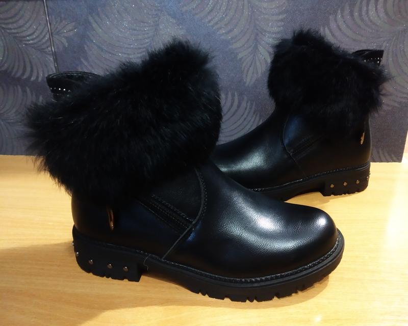 Зимові черевички. Верх: екошкіра, натур хутро. В середині штучне хутро. Застібки: дві блискавки. Розмір:36