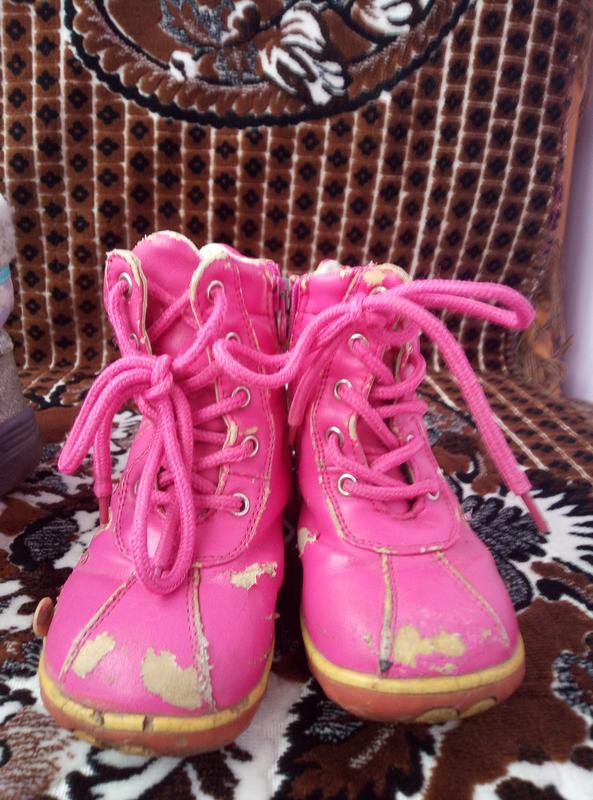 Чобітки для дівчинки у задовільному стані. Розмір 22,довжина устілки 13 см. Змійки робочі. Нюанси на фото. Чобітки для двору.