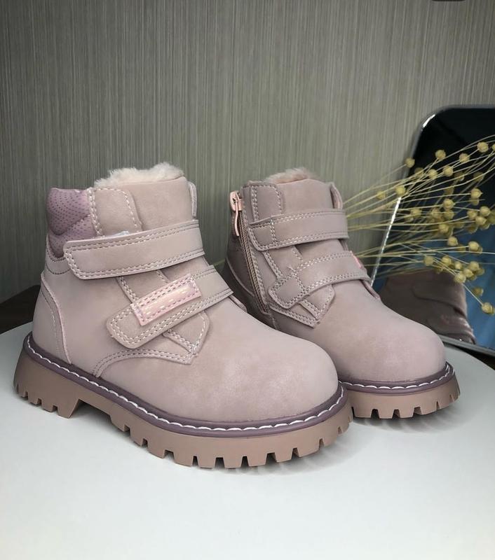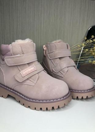 Зимові черевики apawwa для дівчинки, зроблені з еко шкіри, мають дві липучки та замочок. Всередині утеплення штучним хутром.