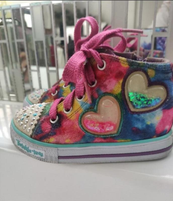 Капчики відомого бренду Skechers 🥰для дівчинки, розміри від 21-23см, обирайте, які Вам сподобалися та пишіть мені в повідомлення, я охоче відповім на кожне запитання. Всі капчики Skechers мають світлодіоди і світяться при ходьбі. Всі світлодіоди справні!🤗