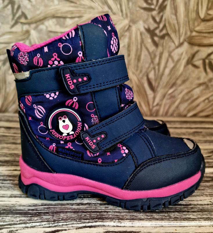 Термо ботіночки для дівчинки в ідеальному стані, всередені овчина, фіксація двома липучками, верх з непромокаючої та не продувної термотканини. Розмір 27, устілка 17 см.