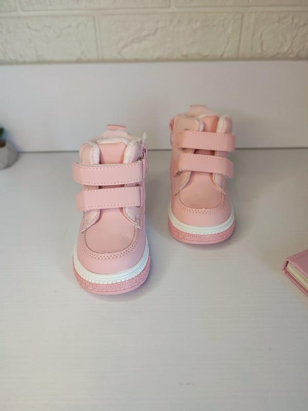 Тепленькие хайтопы на флисе от Том. М (Серия "Флип") в нежном розовом цвете 🌸 Для активных деток, то что надо👌 Легкие и гибкие. Верх - экокожа. Внутри утеплены флисом. Стелька тоже утепленная, с супинатором. Пяточка хорошо держит ножку. Фиксация двумя липучками и боковым замочком. Подошва гибкая 👌 Размеры: 21р - 13,2 см 22р - 14 см 23р - 14,5 см (2) 24р - 15,2 см (2) 25р - 15,9 см 26р - 16,7 см *Гранантии на подсветку нет. 📏 Замеры выполнены вручную, возможна погрешность 1-2 мм. 🚙 Отправка в течение 1-2 роб. дней Цена 680 грн