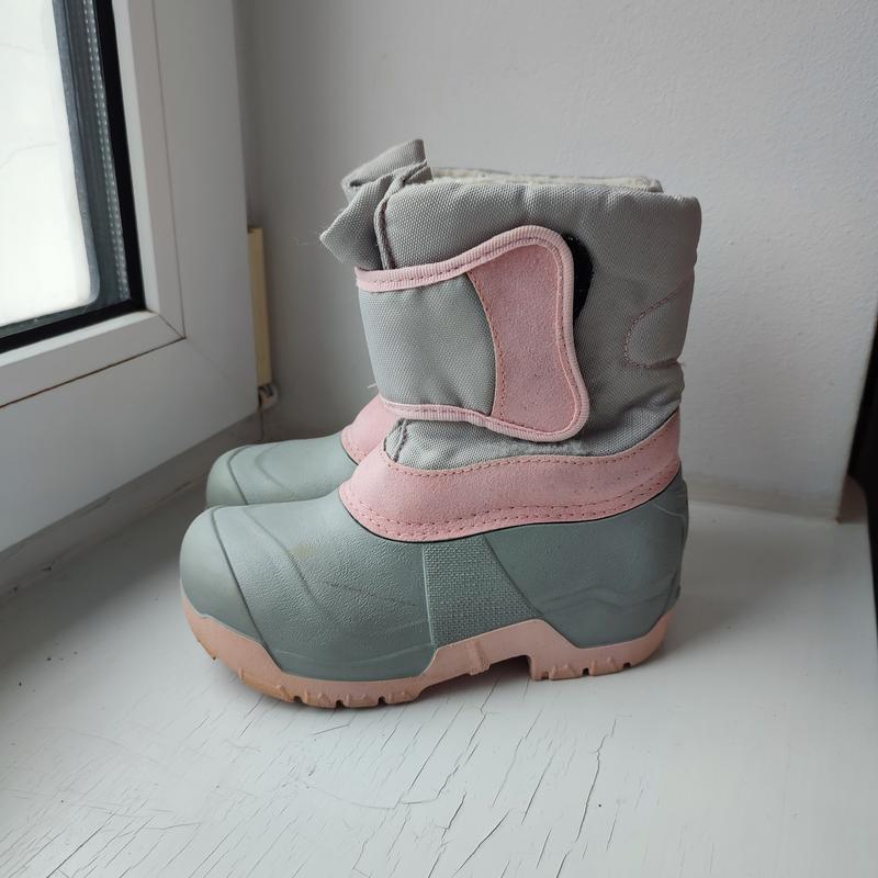 Зимние сапожки Queshua 28-29 размера, в середине идут без стельки, замер 18.5 см, если еще вложить стельку будет 18 см. В середине утеплены искусственным мехом. Не промокают. Застегиваются на липучках, липучки липнут нормально. Состояние очень хорошее.