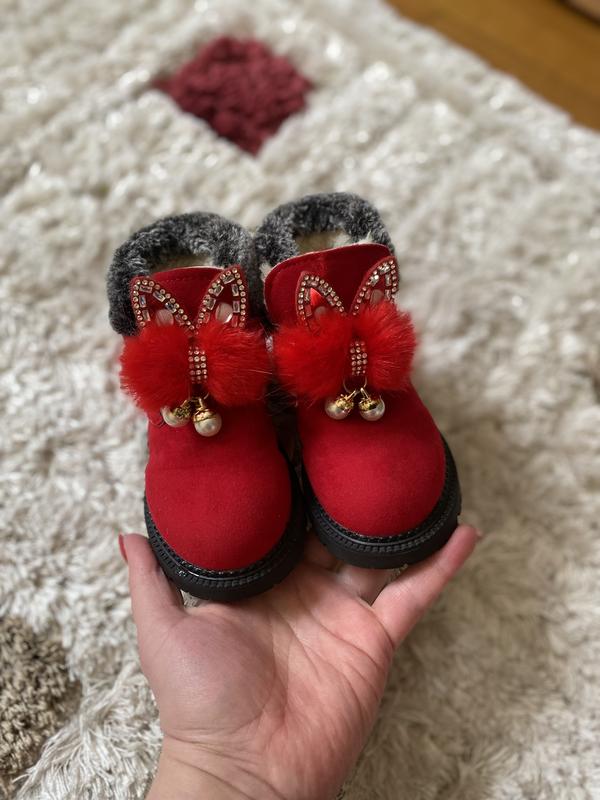 Очень красивые, милые и теплые красные ботинки. Размер 24(14,5 см). Внутри искусственный мех. Очень стильно смотрятся