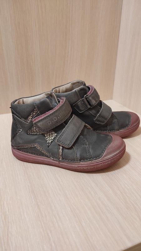 Симпатичные демисезонные ботиночки (Венгрия). Натуральная кожа. Очень удобные, лёгкие, гнущаяся подошва. Анатомическая эргономическая стелька. Липучки в отличном состоянии. Защитный резиновый носочек. Цвет - серый.