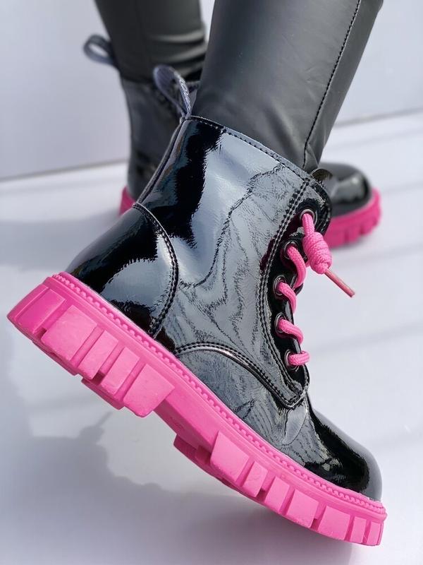 Улюблена оновлена модель чобітків😍 Якісна лакова екошкіра, шнурівка, блискавка🖤 Чи то ігри з хлопцями, чи прогулянка по парку із батьками, чи день народження подруги - у цих чобітках все ideally👌🏻 Дизайн є для кожної, бо ж запали у саме сердечко♥️ В наявності 26-17 27-17,5