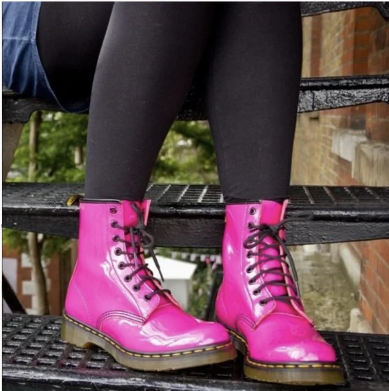 Ярко-розовые массивные ботинки из лакированной кожи dr. martens delaney hiking air walk(ор...
