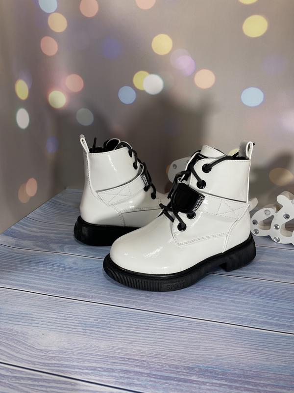 Эффектная весенняя модель Верх лак Внутри полностью утеплены плюшем Есть шнуровка и молния 26-16,5 см 27-17 см 28-17,5 см 29-18 см 30-18,5 см 31-19 см