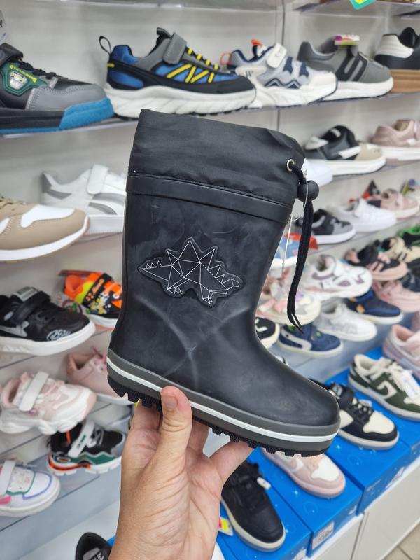 Дитячі чоботи для хлопчиків Tom.M Артикул: 10589B Усередині обшиті байкою (не виймається!), Є зручна знімна вологопоглинаюча устілка. Чоботи дуже стильні, м'які Колір: чорий Легкий та практичний матеріал PVC. PVC - це матеріал, який зовні та на дотик нагадує гуму (м'який). Антиковзна підошва Вгорі чобіт можна затягнути на шнурочок і вода не проникатиме через верх. Дуже зручна та практична модель у дощову погоду Виміри вказані по довжині знімної устілки = внутрішнім вимірам чобота