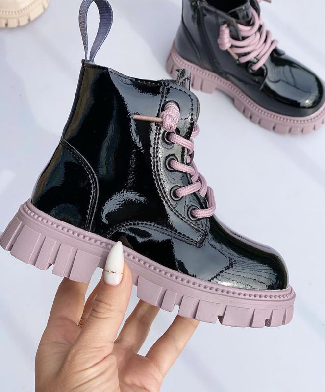 Улюблена оновлена модель чобітків😍 Якісна лакова екошкіра, шнурівка, блискавка Чи то ігри з хлопцями, чи прогулянка по парку із батьками, чи день народження подруги - у цих чобітках все ideally👌🏻 Дизайн є для кожної, бо ж запали у саме сердечко♥️ Розмірна сітка 26-17 36-22 37-23