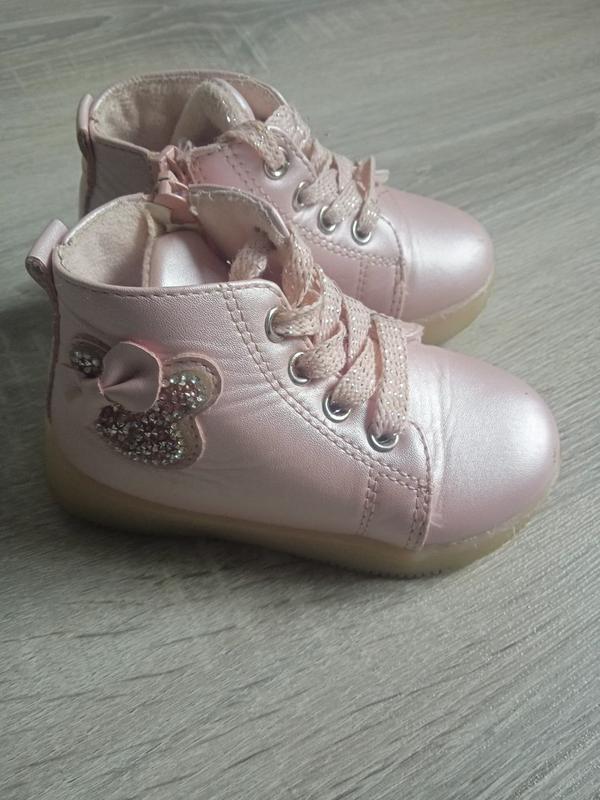 нарядные ботиночки на весну/осень внутри просто текстиль, без утеплителя и шнуровка и замок хорошо держат ножку немного есть следов носки стелька - 13,5 см подошва - 15 см