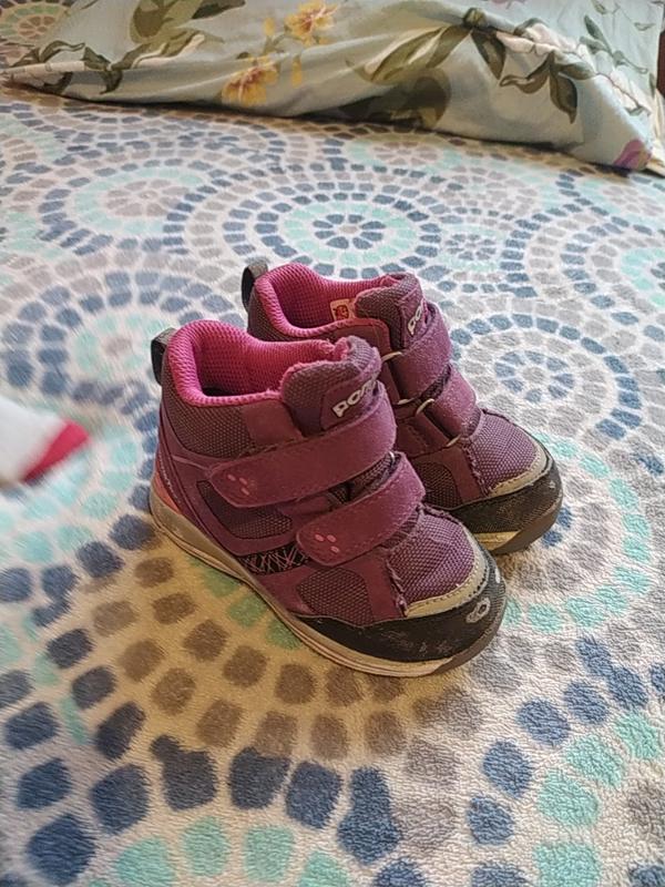 Ботинки на липучках. Внутри текстильное утепление. Размер 24. По подошве 17.5 см. Есть светоотражающие полоски на носках.