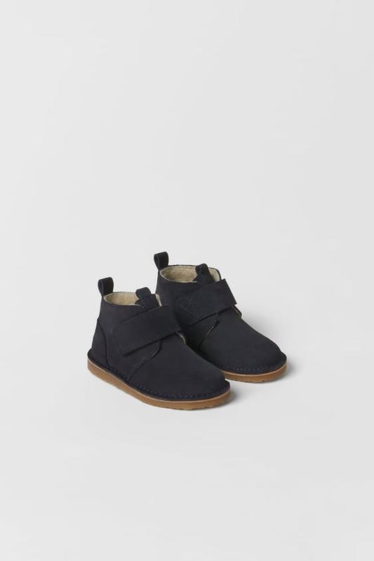 Ботинки ZARA из 100% бычьей кожи с выделкой под замшу. Регулируемый ремешок с текстильной застежкой, утепление из искусственной овчины. Петельки спереди и сзади для удобства при обувании. цвет СИНИЙ Размер 26
