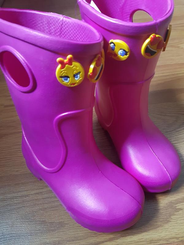 Самые лёгкие сапожки для дождливой погоды Вашей малышке. Цельно литые, не промокают, не расклеиваются .Ребёнок не будет ощущать все камушки на дороге.Материал изготовления- ЭВА (пенка), легкий, износостойкий, водостойкий. Размеры: 22 - 23 (13 -13 ,5 см), 24 - 25 (14,5 -15 см), 26 - 27 (16 -16,5 см), 28 - 29 ( 17.5-18 см)