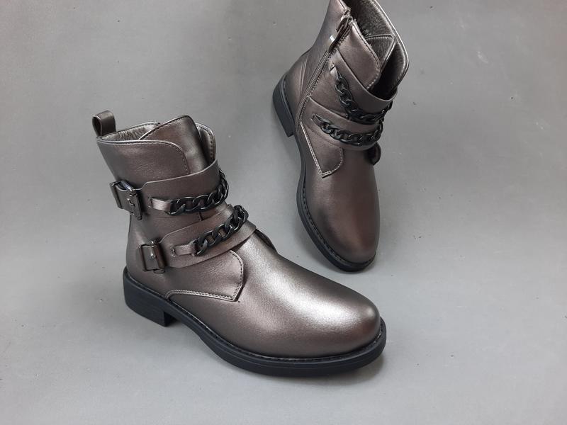 Модні, стильні класні черевички ТМ Солнце Матеріал верху штучна шкіра. Матеріал підкладки - фліс Устілка - утеплена Застібка замочок Підошва гнучка Розмірна сітка: 32 - 20,5см продані 33 - 21,0 см продані 34 - 21.5 cм 35 - 22,5 см продані 36 - 23.0 cм продані 37 - 23.5 см продані