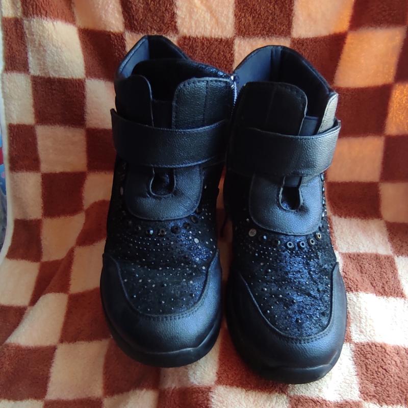 Деми ботинки,очень хорошем состоянии.эффект виден на фото оттопливенькие камешки, переносили совсем мало,35 размер по стельке 21.0 21.5.Удобные.