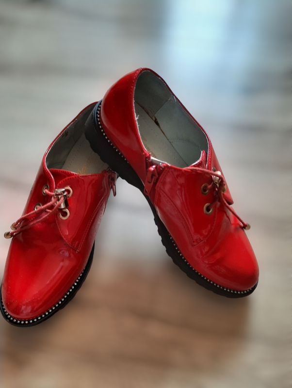 Красные лакированные ботиночки 34р., длина стельки 22 см, в идеальном состоянии, надевались 1 раз, за лето переросли. Очень удобные, подходят к юбочкам и брюкам