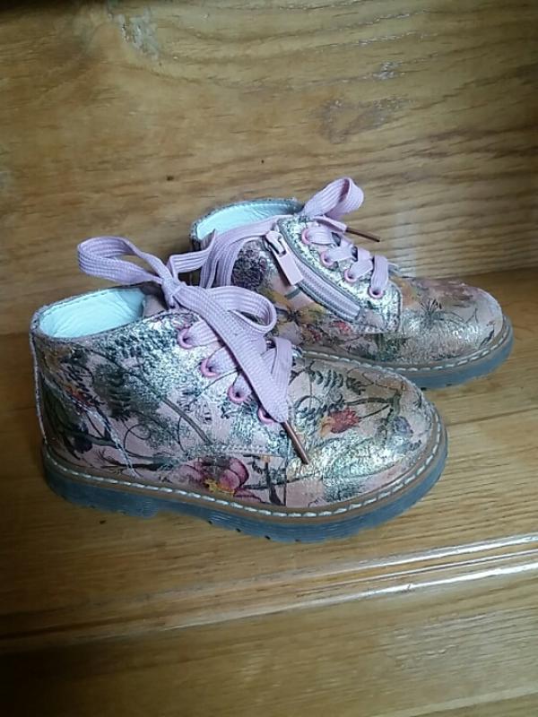 Великолепные удобные ботинки. Стелька 16 см и с супинатором. Внутри кожа, без утепления. Очень удобные и легкие. Подошва резиновая. Замки целые, но но носки немного затертые (в носке не очень заметно, мы окрашивали золотой краской и все красиво выглядели).