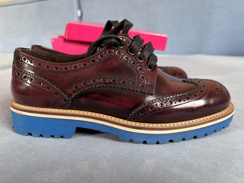 Оксфорди в ідеальному стані. На Попелюшку із 34-35 розміром ноги. В середині шкіряні. Зроблені якісно, виглядають дорого. Довжина по устілці 22,5 см. Висота каблука 2,7 см.