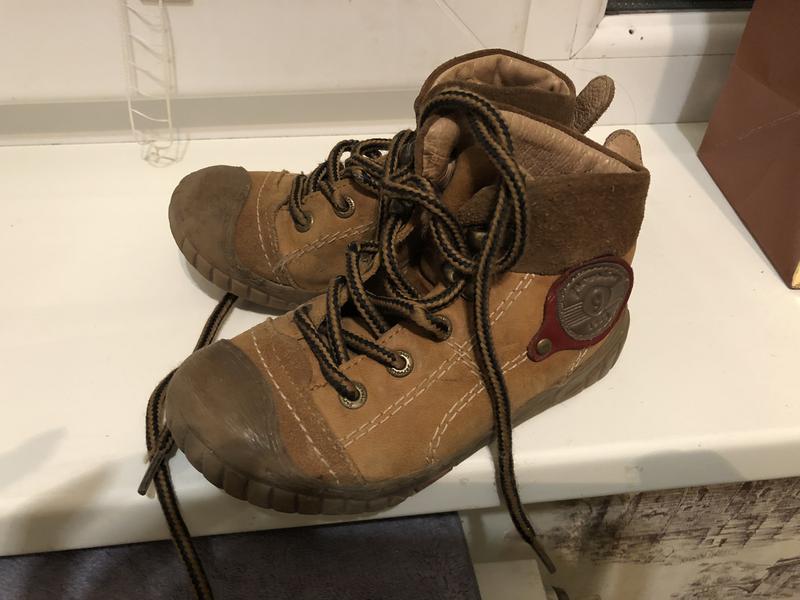 Ботиночки очень стильные, носочек прорезиненный что очень удобно для детской обуви. Состояние хорошее, поцарапана только прорезиненная часть. Кожа натуральная